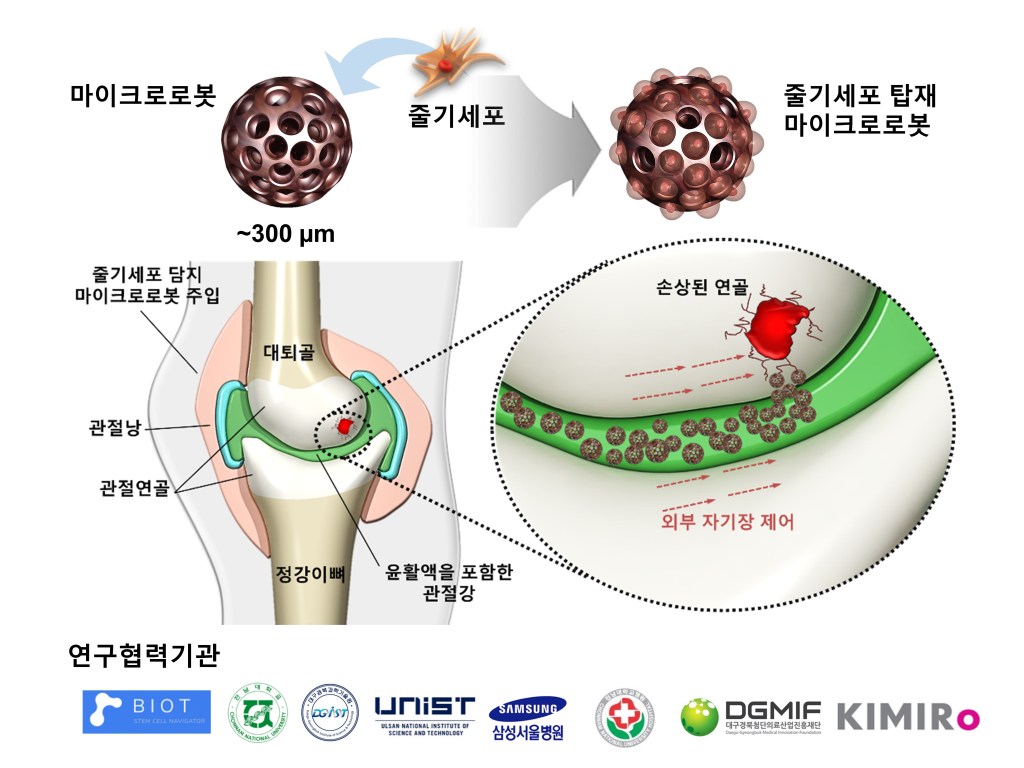 줄기세포를 태우고, 무릎 관절 공간을 이동하며, 연골을 재생하는 로봇